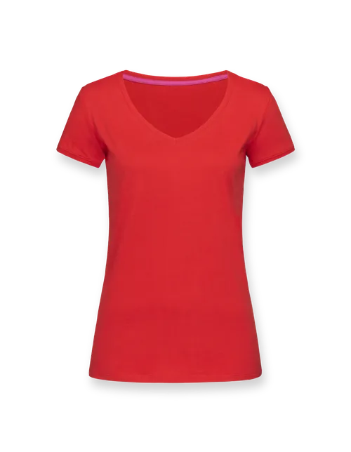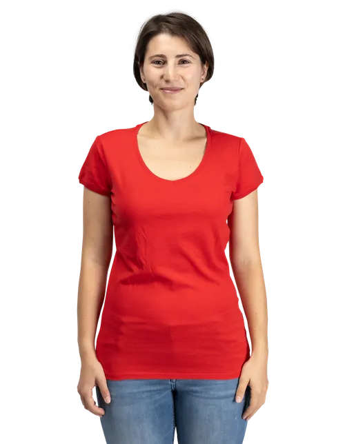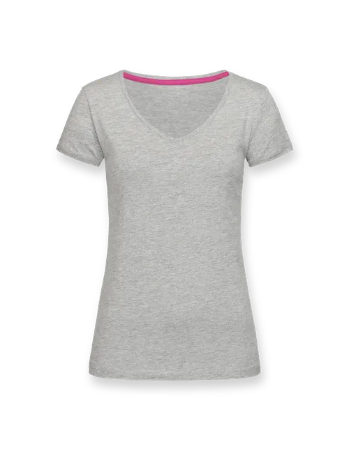 The women’s T-shirt features a wide V-Neck and slim fit. The athletic yet relaxed cut offers a sporty look.